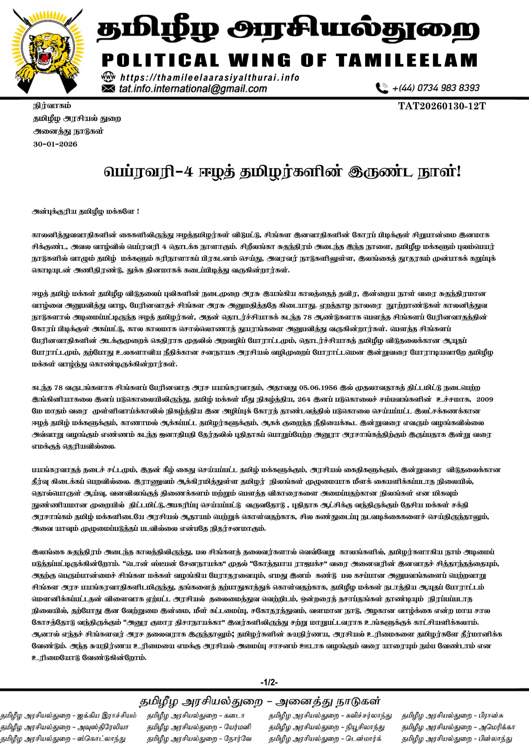 பெப்ரவரி 4, ஈழத் தமிழர்களின் இருண்ட நாள்.