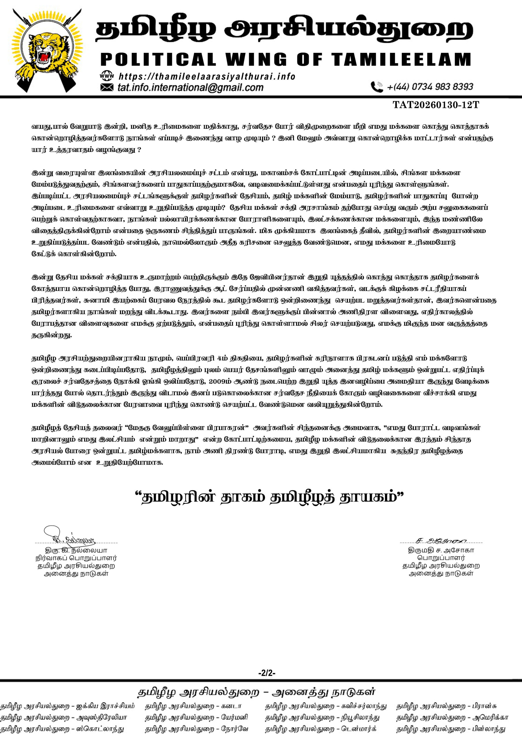 அன்புக்குரிய தமிழீழ மக்களே !