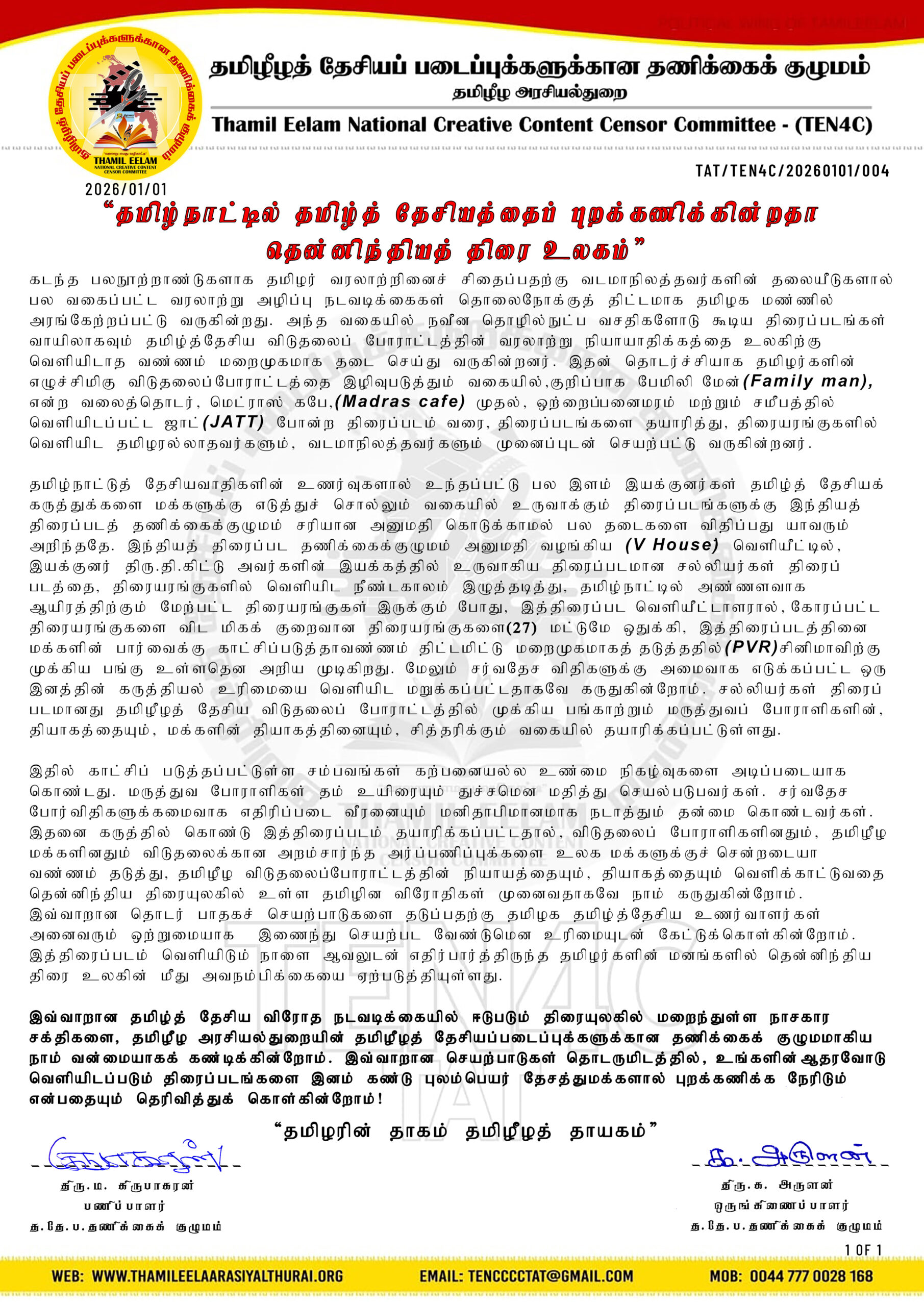 தமிழ் நாட்டில் தமிழ்த் தேசியத்தை புறக்கணிக்கின்றதா தென்னிந்தியத் திரை உலகம் என்ற வினாவுடன்; தமிழீழ அரசியல்துறையின், தமிழீழத் தேசியப் படைப்புக்களுக்கான தணிக்கைக் குழுமம் அறிக்கை ஒன்றை தென்னிந்தியத் திரை உலகை நோக்கி , சல்லியர்கள் திரைப்படத்திற்கான ஆதரவுடன் வெளியிட்டுள்ளது!